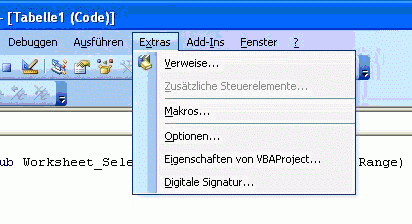 Wenn Sie mit Microsoft Excel arbeiten, öffnen Sie zunächst den VBA-Editor über das Menü "Extras" und dem Menüpunkt "Makro"