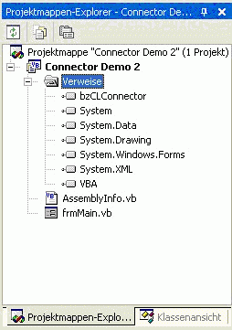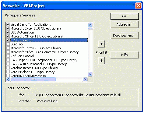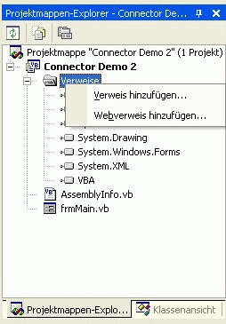 Um einen Verweis auf die Connector-DLL in Visual Basic Version 6.0 zu setzen, öffnen Sie in der