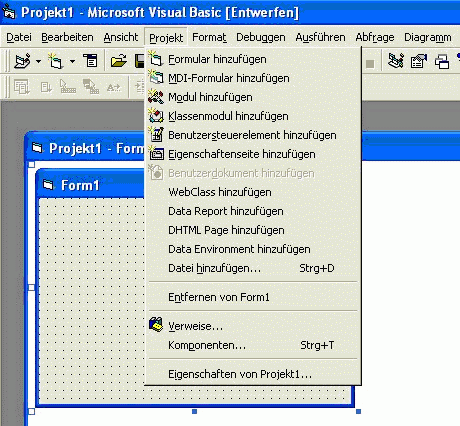 Entwicklungsumgebung den Menüpunkt "Projekt" und dort den Menüpunkt "Verweise".